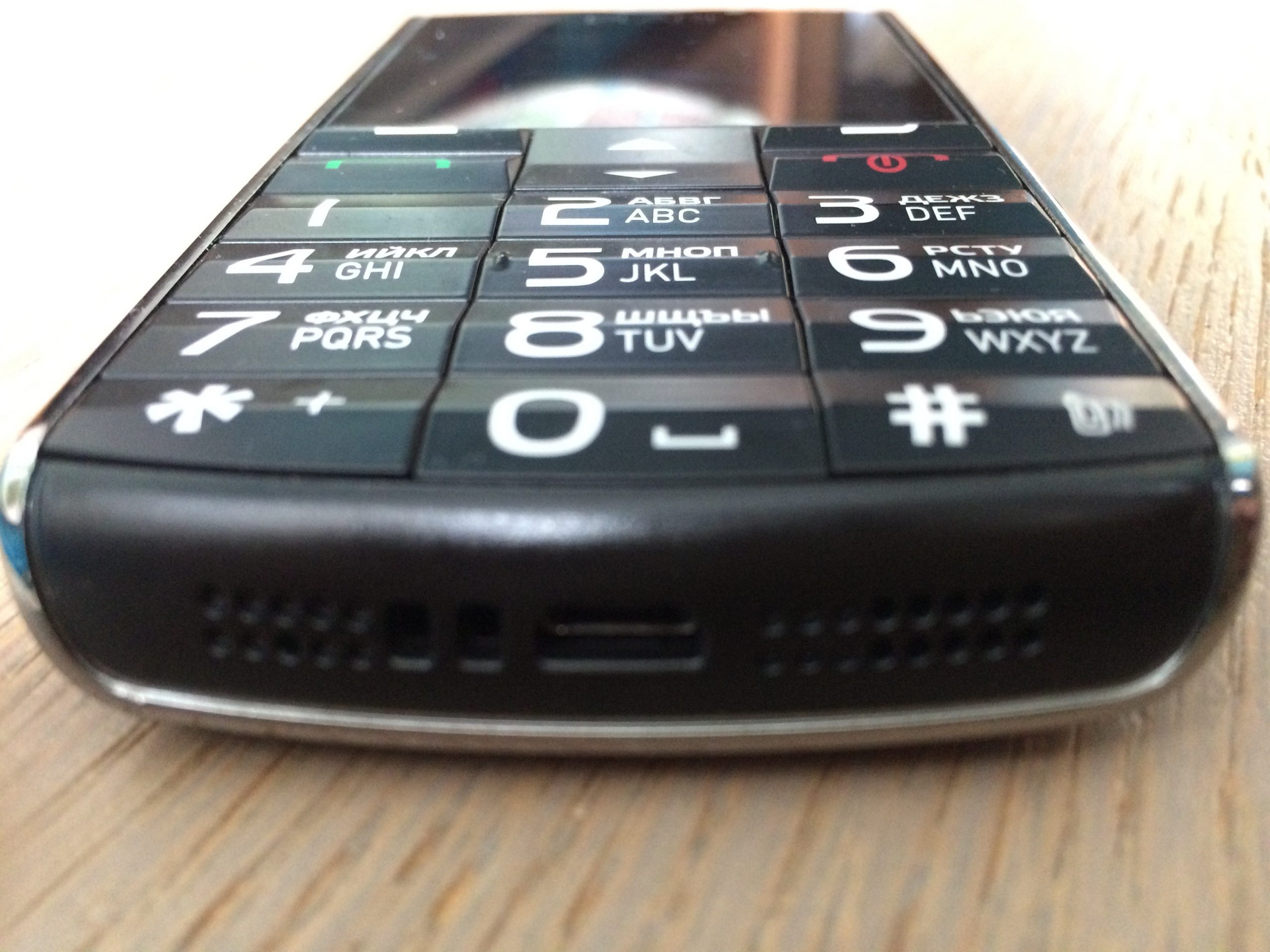 На первый взгляд аппарат выглядит симпатично. Он как влитой ложится в руку, шероховатое покрытие задней крышки очень приятно. Сам корпус пластиковый, с металлическими вставками, выглядит весьма аккуратно — да, его не стыдно достать из кармана. Никаких кнопок сбоку, сверху, снизу, все нужное размещено на фронтальной клавиатуре, за исключением большущей красной кнопки SOS, она находится под основной камерой на тыльной стороне корпуса SafePhone (нажимаешь — на несколько секунд включается противный звук сирены).