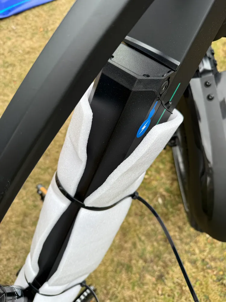 Снимать 48-вольтовую батарею Samsung для зарядки поначалу было неудобно, но со временем я привык (батарея запирается, ключи в комплекте). Заряжать ее на месте, вероятно, проще, если розетка находится рядом. Помимо зарядного устройства, Hitway также кладет в комплект мультитул, велосипедный насос и даже замок. Приятно.