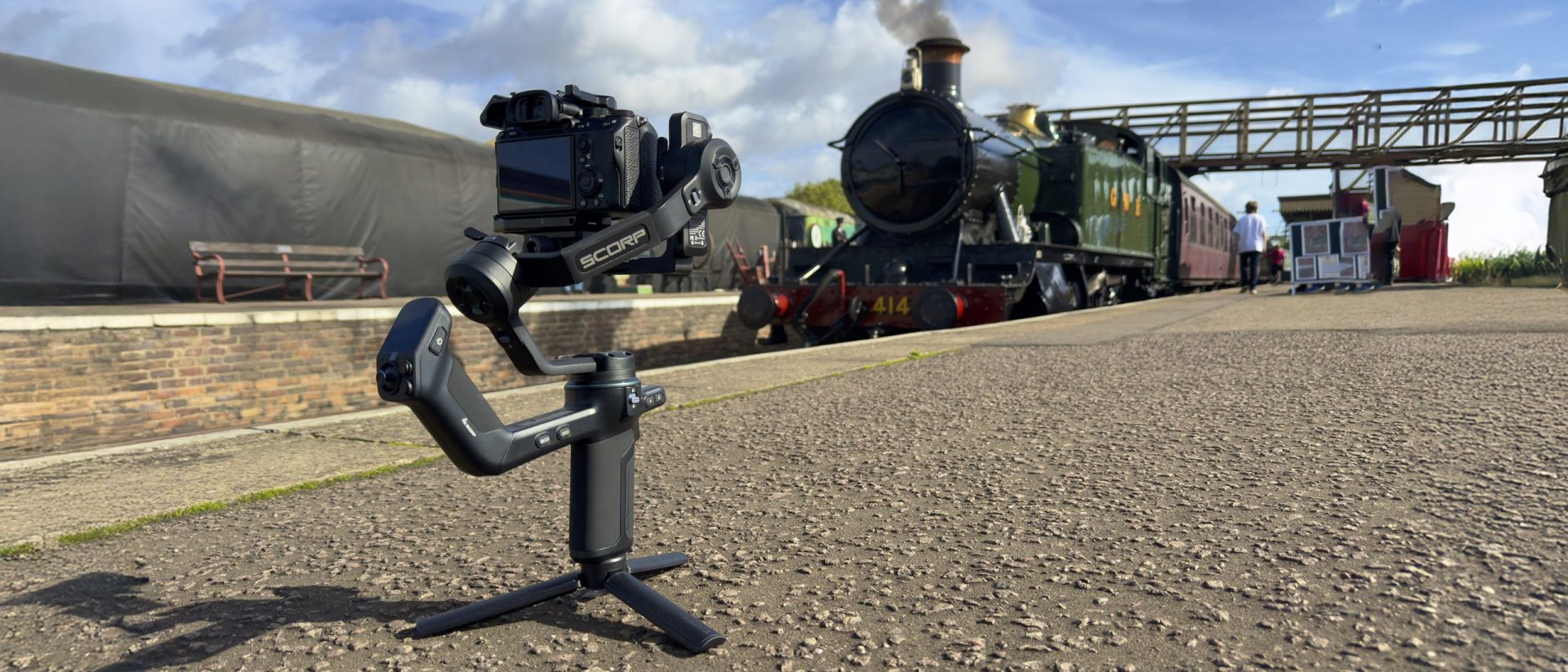 Мне понравилось использовать Feiyu Scorp 3, чтобы панорамировать, наклонять, отслеживать и поднимать мою относительно тяжелую камеру Sony на старинной железнодорожной станции. Снимая с ручным стабилизатором, я мог быстро передвигаться и быть готовым снимать паровозы, когда они прибывали или отправлялись. Я также мог снимать статичные кадры, как со штатива, не загромождая оживленную платформу громоздким полноразмерным штативом, о который можно споткнуться. Мини-штатив стабилизатора оказался очень полезным, так как в сочетании с ИИ-трекером он позволил мне выступать перед камерой, как будто у меня был талантливый оператор, который мог панорамировать и наклонять камеру, чтобы следовать за каждым моим движением.