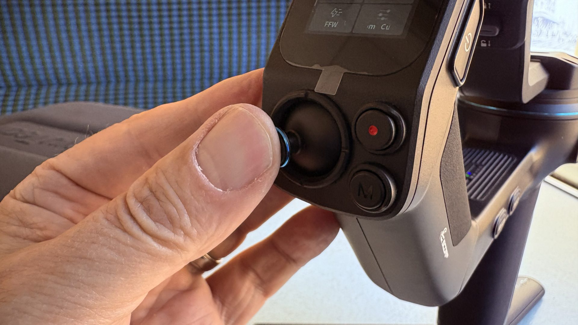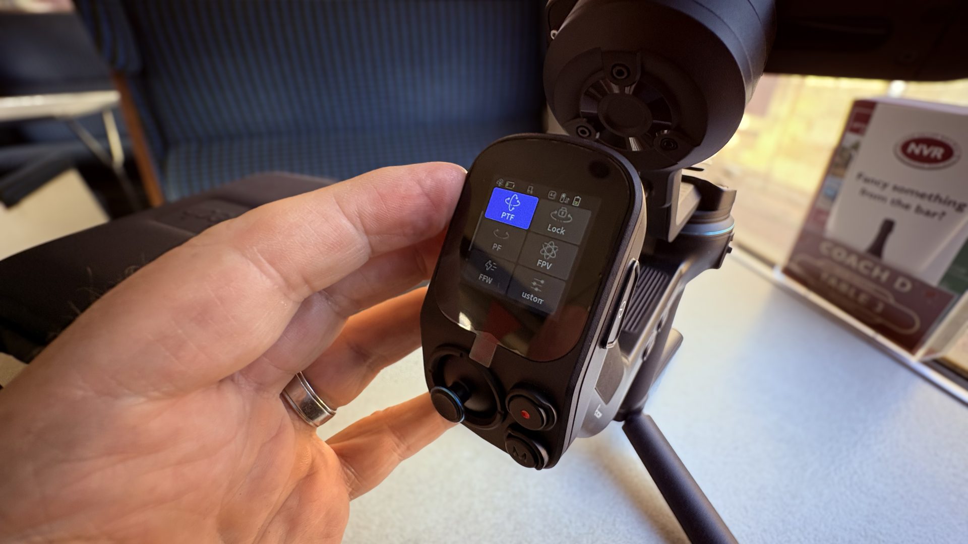 Как только камера и стабилизатор были настроены, я с удовольствием исследовал различные режимы съемки Scorp 3 — PF (следование по панораме), PTF (следование по панораме и наклону), Lock (блокировка) и FPV (вид от первого лица). Их можно было выбрать, коснувшись иконки на 1,3-дюймовом сенсорном OLED-экране, или я мог переключаться между режимами, нажимая физическую кнопку Mode на рукоятке управления.