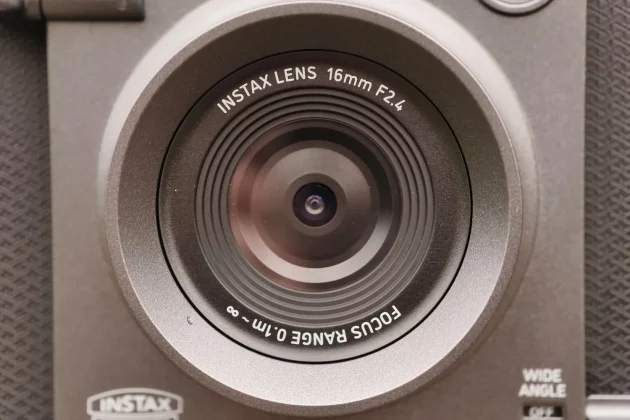 Корпус выполнен из пластика, в том же сочетании серого металлического и текстурированного черного оттенков, что и цифровые камеры GFX профессионального класса Fuji. К тому же она тяжелее, чем кажется, что делает ее менее игрушечной, чем другие модели Fuji Instax. Резьба для штатива внизу — разумное дополнение к камере, так подходящей для пейзажной съемки.