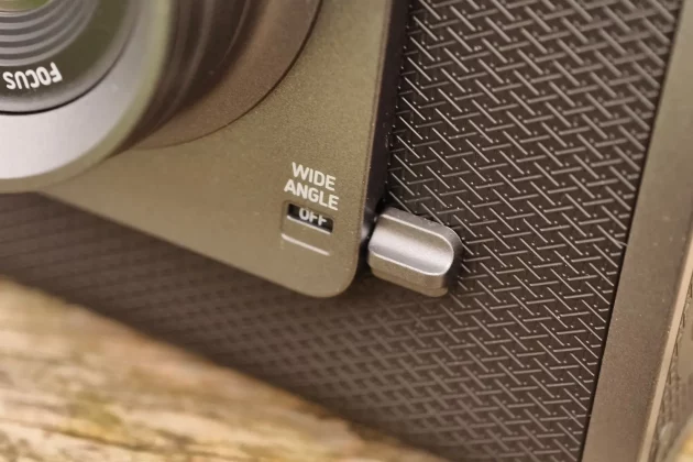 Мне нравится, что Fujifilm использует здесь ретро-стиль: логотипы и этикетки в стиле старой школы, рычаг спуска затвора вместо кнопки и даже ручная перемотка плёнки для распечатки снимков. Добавьте к этому вращающиеся регуляторы с обеих сторон, поворотный выключатель питания и рычаг для регулировки поля зрения объектива, и вы поймёте, что здесь много разных способов управления. Спереди мало что выдаёт тот факт, что эта камера скорее цифровая, чем аналоговая.