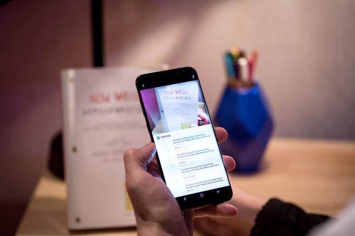 Предполагается, что вы сможете активировать эту функцию с помощью голоса, когда оживет Биксби, но пока вам придется сначала открыть приложение фотокамеры или выбрать картинку в собственной Галерее. Слева на экране вы увидите новую иконку «глаз», касание которой и превратит ваш телефон в виртуальные глаза Bixby, готовые сканировать все, что он видит. Как только он «захватит» объект, то предложит на выбор просканировать похожие изображения на Pinterest или Amazon, а при необходимости переведет текст или по этикетке идентифицирует и опишет вино.
