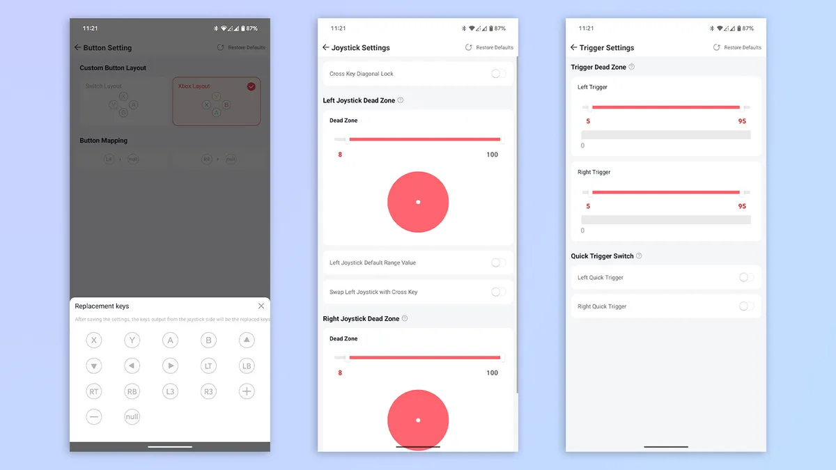 Если вы хотите настроить свой GameSir G8 Plus, вам нужно будет загрузить приложение GameSir на iOS или Android. Приложение имеет чистый пользовательский интерфейс и позволяет переназначать кнопки, назначать функции двум задним кнопкам, обновлять прошивку, устанавливать мертвые зоны для триггеров и стиков и даже отключать диагональные вводы на D-паде. Последнее особенно полезно в играх, которые не используют ничего, кроме четырех основных направлений.