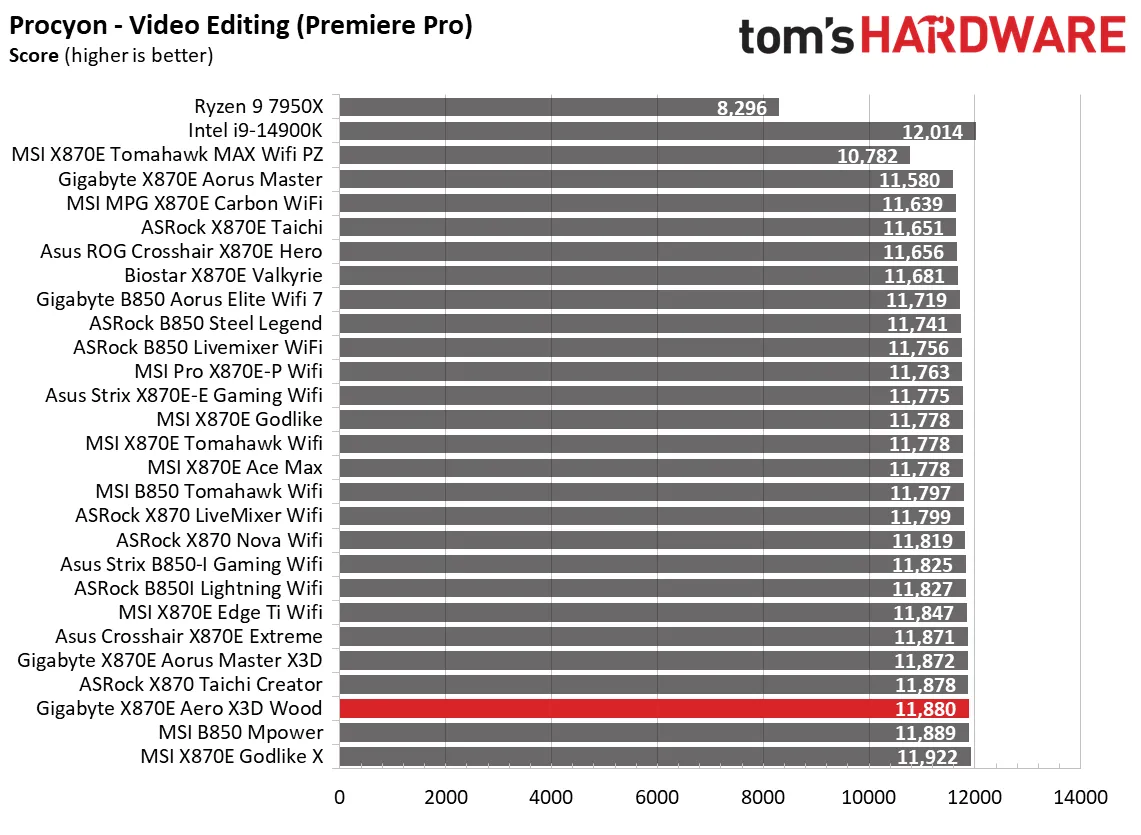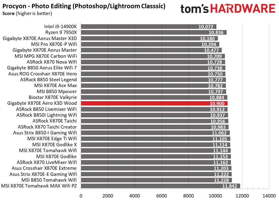 Результаты наших синтетических тестов показали, что наша плата демонстрирует очень хорошие показатели в самых разных сценариях. Фактически, это был лучший результат, который я видела в 7-Zip (сжатие), Cinebench R24 (многопоточная производительность) и POV-Ray (многопоточная производительность), и она была в числе лучших в остальных тестах, за исключением Procyon, где результат был лишь средним. Отличные результаты на данный момент.
