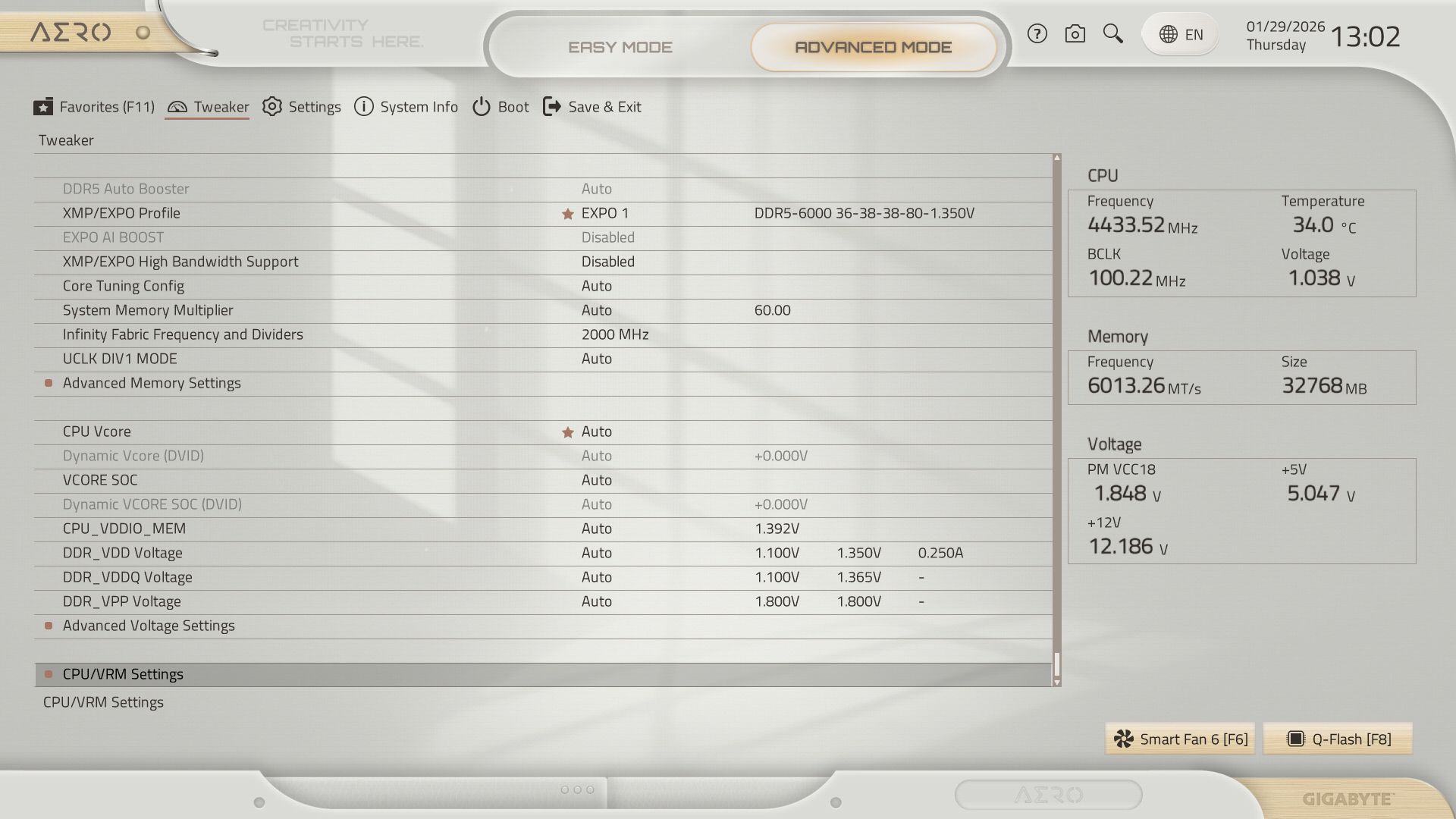Тем не менее, это не самая мощная система питания, но она легко справилась с нашим Ryzen 9 9900X и будет хорошо работать с более энергоемкими процессорами, такими как Ryzen 9 9950X или недавно выпущенный Ryzen 9 9850X3D. Скорее система охлаждения станет ограничивающим фактором, чем VRM-модули.