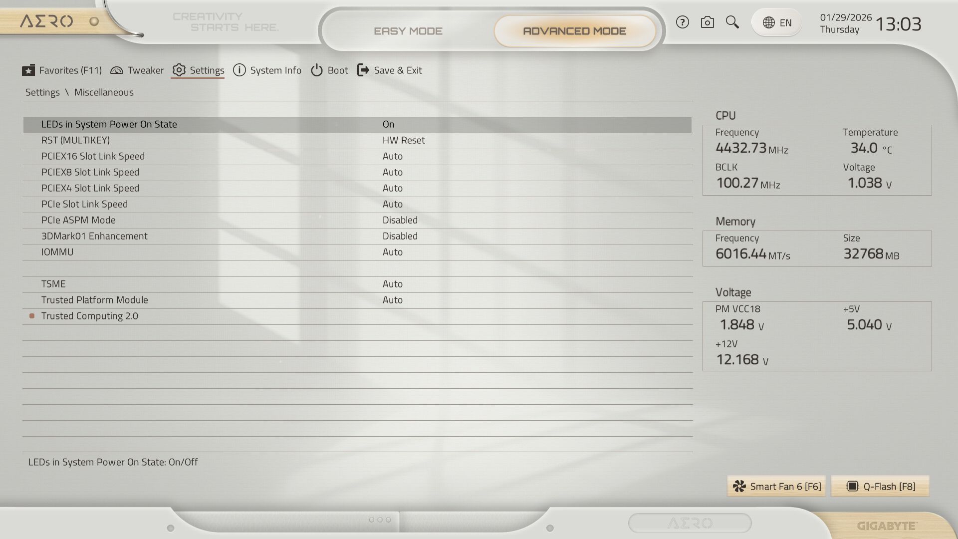 В плане железа Aero X3D обладает всем, что можно ожидать от платформы X870E. Поддержка современных (и будущих) процессоров, поддержка высокоскоростной памяти (до DDR5-9000), большой объем хранилища с четырьмя разъемами M.2 (два из которых — PCIe 5.0) и четырьмя портами SATA, быстрая сеть с двумя портами 5 Гбит/с и Wi-Fi 7, множество портов USB (включая два порта USB4 40 Гбит/с) и надежное аудиорешение — это лишь некоторые из особенностей этой уникально оформленной платы.