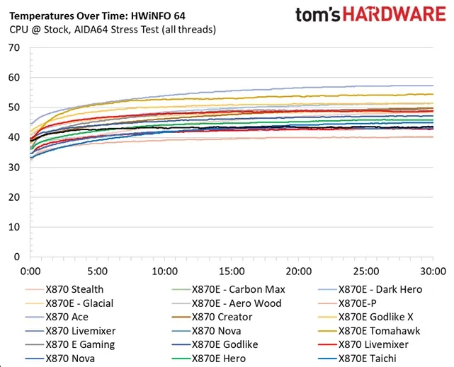 Радиаторы отрабатывают каждый вложенный рубль. Температура цепей питания (VRM) не поднялась выше 49 градусов! С такой подсистемой питания можно хоть жидким азотом камень заливать — плата даже не вспотеет.