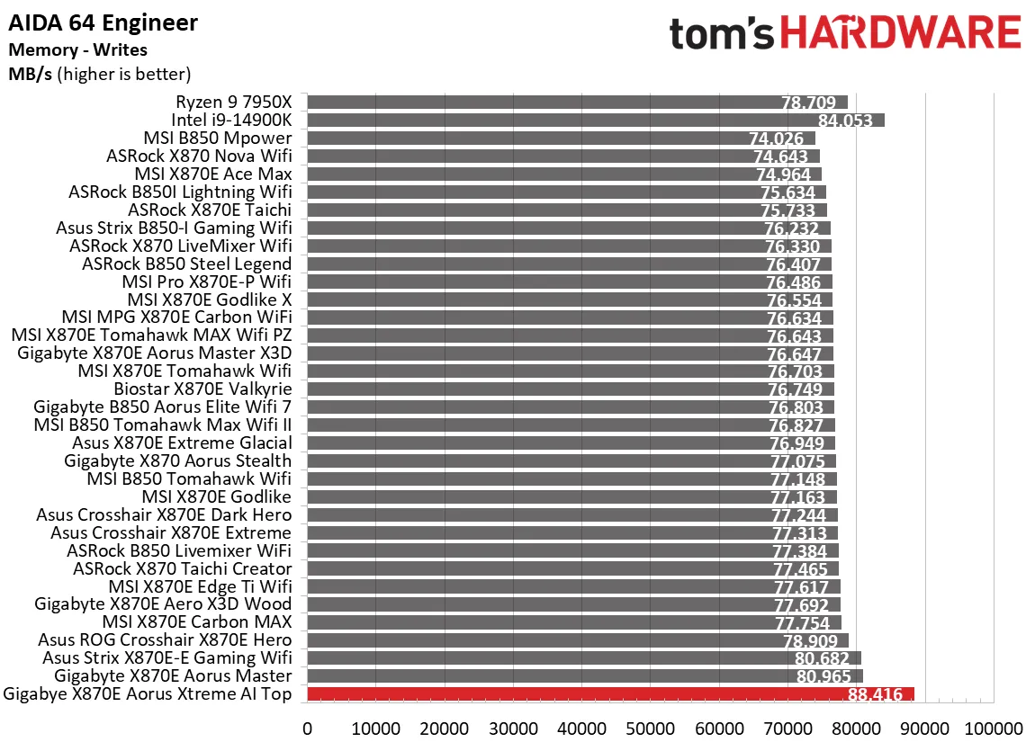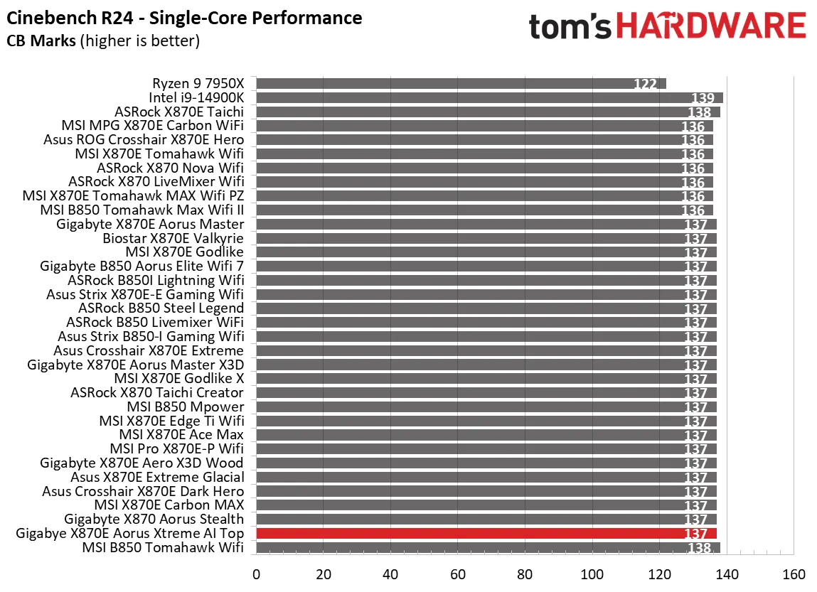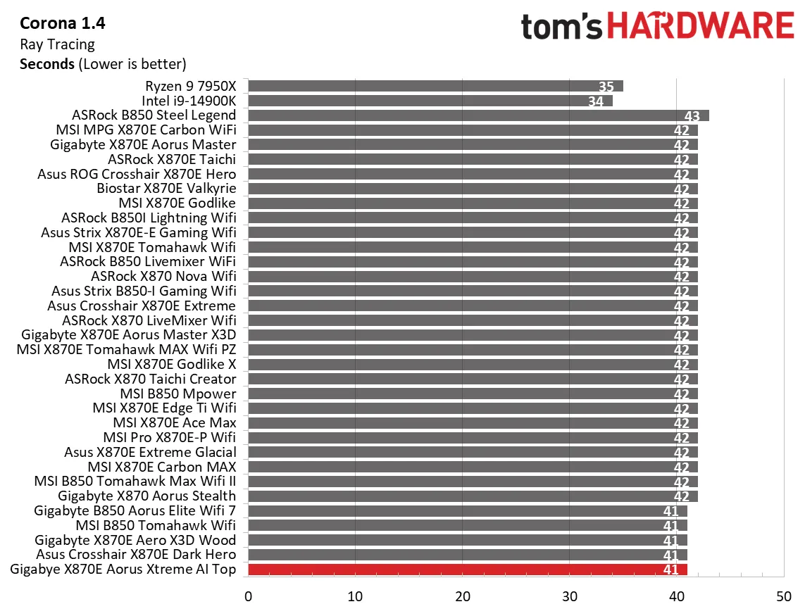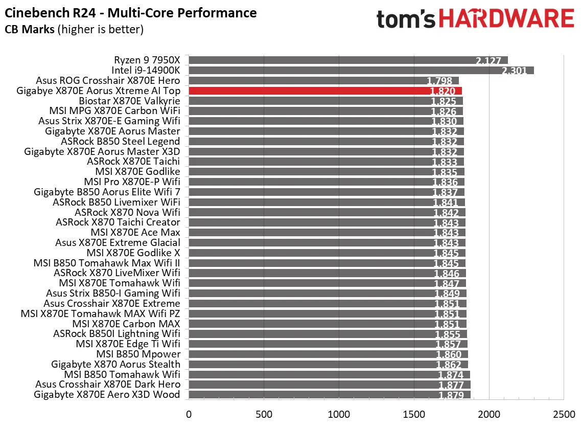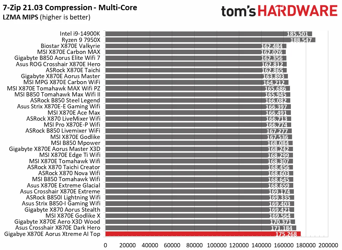 Синтетические тесты отлично показывают, как плата работает с базовыми настройками. И Aorus Xtreme AI Top здесь просто блистает. Плата выдала одни из самых высоких баллов в офисных приложениях, рендеринге и кодировании видео.