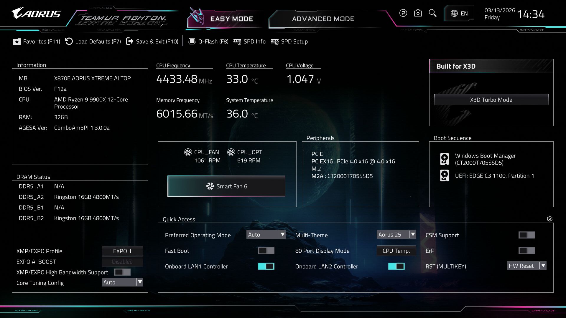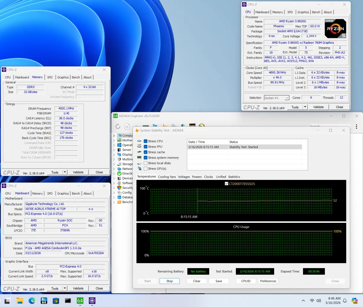 Современные процессоры уже выжаты с завода, поэтому ручной разгон ядер чаще всего не имеет смысла. А вот с памятью поиграться стоит. Мой самый быстрый комплект Klevv DDR5-8000 без проблем загрузил Windows, но стресс-тест с мощным Ryzen 9 9900X не прошел (контроллер памяти в самом камне не справился). Зато с процессором попроще (Ryzen 5 8600G) эти же 8000 МГц работали идеально стабильно. В любом случае, оптимальной частотой для этой платформы остается 6000-6400 МГц, и плата справляется с ней играючи.