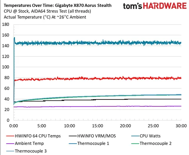 Под максимальной нагрузкой в AIDA64 материнская плата потребляла около 267 Вт в пике, а в простое — 96 Вт. Да, аппетиты у нее чуть выше, чем у плат попроще, но на счетах за электричество вы этого точно не заметите.