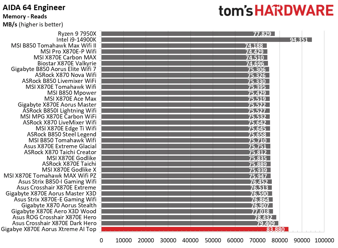 Что касается производительности, то на последней прошивке (F12a с AGESA 1.3.0.0) эта плата показала одни из лучших результатов за всю историю моих тестов. Весь секрет кроется в том, что по умолчанию (я просто включила профиль Expo для оперативки, без всяких дополнительных бустов) плата как-то хитро оптимизирует пропускную способность памяти. Как мы увидим в тестах AIDA64, это дает серьезный прирост по всем фронтам.