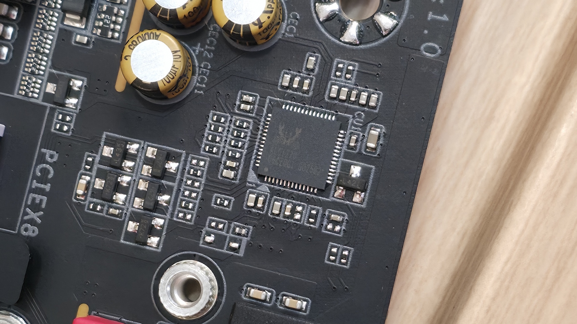 Далее идут два порта Marevell AQTion 10 GbE, модуль Wi-Fi 7 (5,8 Гбит/с) на базе Mediatek (или Qualcomm в зависимости от версии платы) и, наконец, аудиовыход, включающий линейный выход, микрофонный вход и оптический выход SPDIF. Хотелось бы видеть здесь больше USB-портов, как у конкурентов, но большинству пользователей они не понадобятся.
