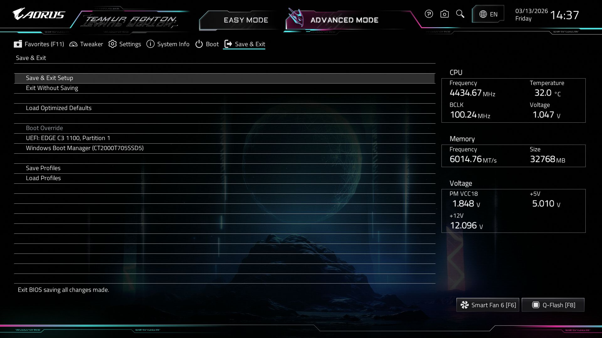 Слоты для оперативной памяти усилены броней (особенно основные A2/B2) и имеют защелки с обеих сторон. Gigabyte обещает разгон до DDR5-8800, и это не пустые слова: мои тестовые модули DDR5-8000 завелись с пол-оборота. Вокруг раскидана куча коннекторов для вентиляторов, датчиков температур и RGB-лент — всё это управляется прямо из BIOS или через утилиту в Windows.
