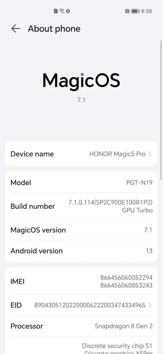 | Программное обеспечение (на момент выпуска) | MagicOS 7.1 (на базе Android 13.0) |