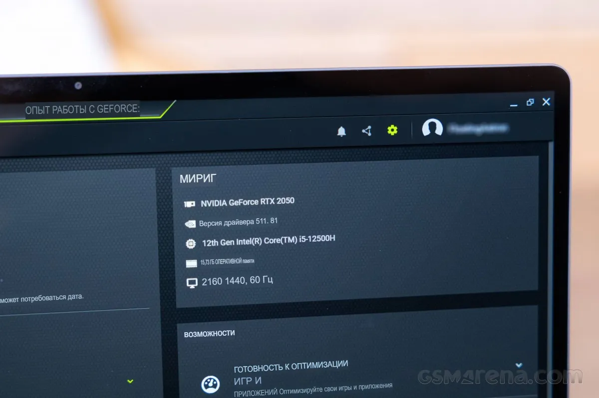 Наше обзорное устройство также поставляется с дискретной видеокартой NVIDIA GeForce RTX 2050 с 4 ГБ видеопамяти GDDR6 и энергопотреблением 60 Вт. Это видеокарта среднего уровня для ноутбуков с поддержкой DirectX 12 и OpenGL 4.6, но она «оживает» только во время игр или редактирования видео — со всем остальным справляется встроенный графический блок Intel Iris Xe.