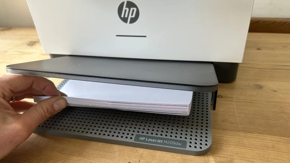 Сенсорный интерфейс упростил бы управление HP LaserJet M209dw, но для такого простого устройства, как это, он не нужен. Лоток для бумаги удобно расположен спереди для переключения носителей, а кнопки управления достаточно интуитивно понятны.