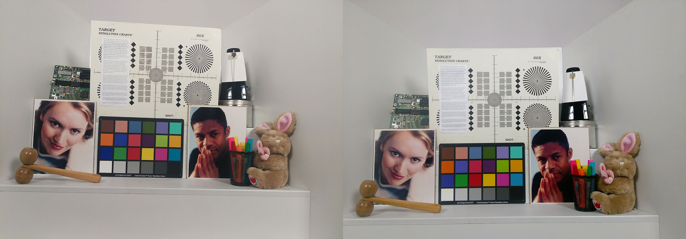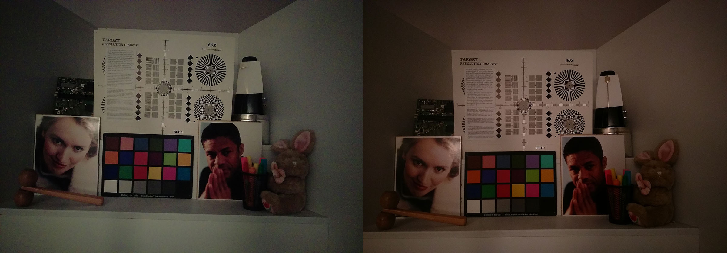 Слева – тест камеры One M9, а справа – тест камеры One A9. Вы можете видеть, что на правом снимке баланс белого чуть лучше