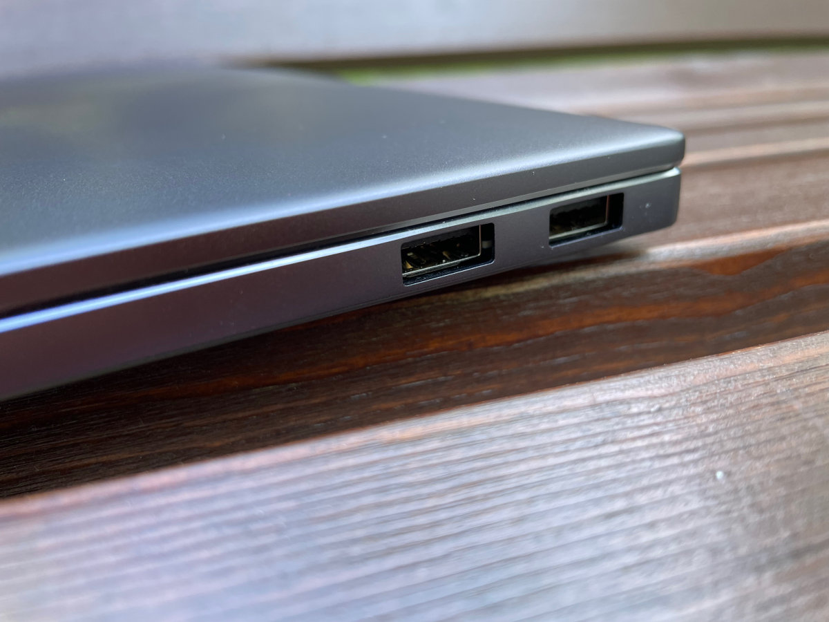 Для подключения периферийных устройств на корпусе Huawei MateBook 14 2021 установлены пять разъемов. Среди них три USB порта: два стандартных справа и один USB TYPE-C с левой стороны. Последний одновременно используются для подключения зарядного устройства и может работать в качестве видеовыхода. Здесь же установлен HDMI порт для подключения внешнего монитора и разъем для проводных наушников/микрофона. Слот для подключения SD-карт на корпусе отсутствует.