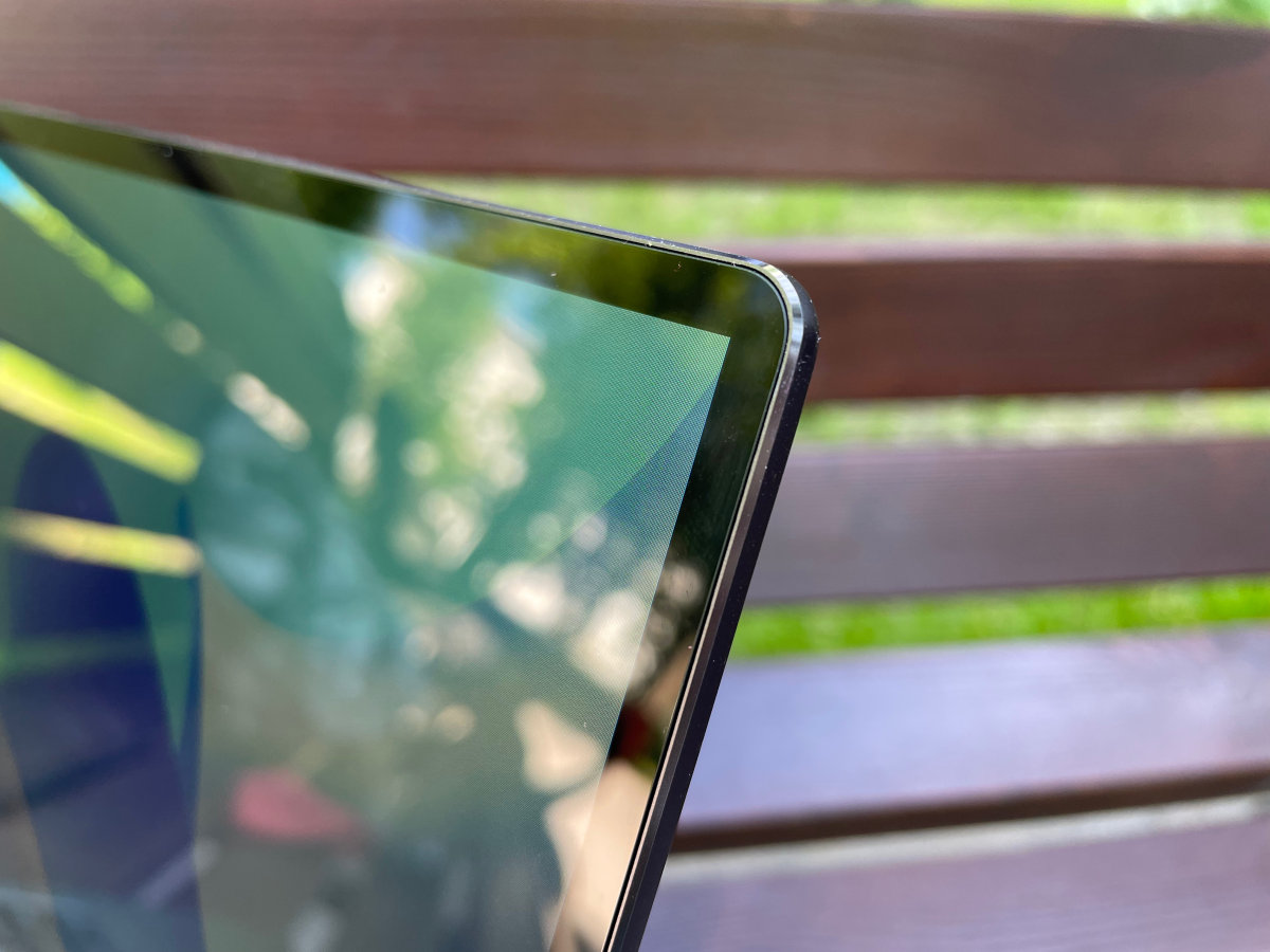 И вот первый плюс сенсорного экрана: в выключенном состоянии кажется, что рамок вокруг матрицы нет. По факту же они присутствуют и по сегодняшним меркам довольно широкие.
