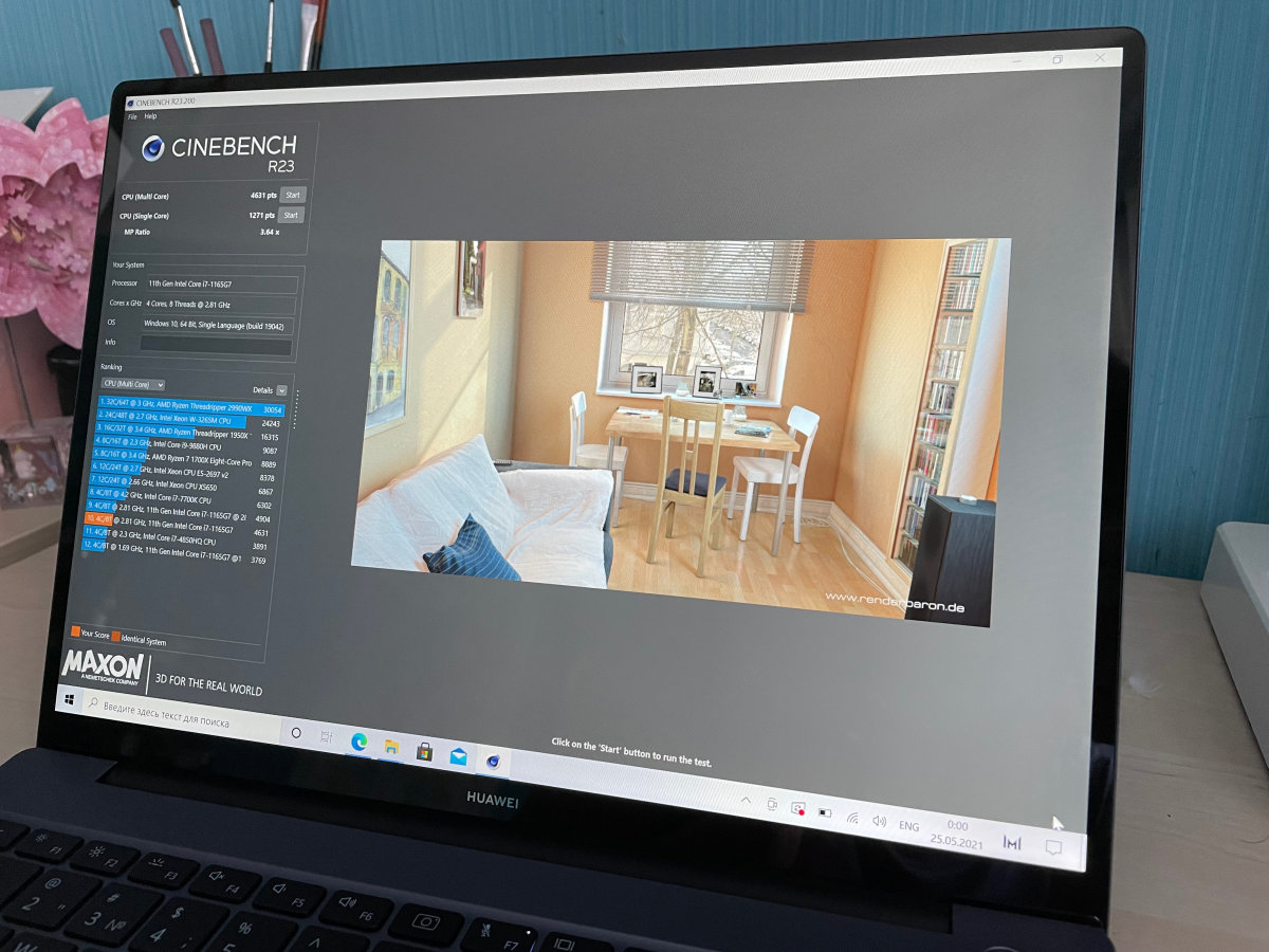 Новый ноутбук Huawei получил шустрый процессор Intel Core i7-1165G7 (4 ядра/8 потоков) с встроенной графикой и 16 Гбайт оперативной памяти. Плюс активная система охлаждения с двумя вентиляторами, так что запускать на Huawei MateBook 14 2021 ресурсоемкие программы совсем нетрудно. Результаты выполнения синтетических тестов представлены на скриншотах.