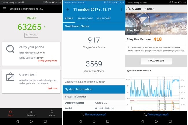 Результаты тестов на производительность AnTuTu Benchmark, AnTuTu Tester, 3DMark и Geekbench 4