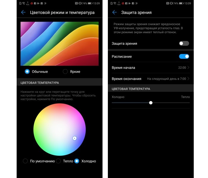 Еще забота о пользователе. OLED-дисплей с разрешением 1080 x 2240 хорош, но можно сделать его еще лучше, максимально подогнав настройки под свои предпочтения. Яркие или обычные цвета, настройка под текущее освещение яркости и цветовой температуры — есть все.