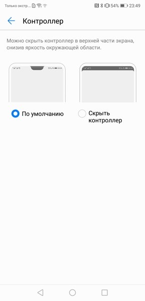 Если монобровь вам категорически не нравится, зайдите в настройки смартфона, затем в меню экрана и выберите Контроллер. Активируйте режим «Скрыть контроллер» и Huawei P20 Pro приобретет более классический вид.