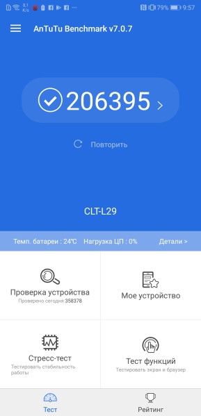 Восьмиядерный процессор Huawei Kirin 970, 6 Гбайт оперативной памяти и закономерный итог — смартфон очень быстро в реальной жизни и радует в синтетических тестах.