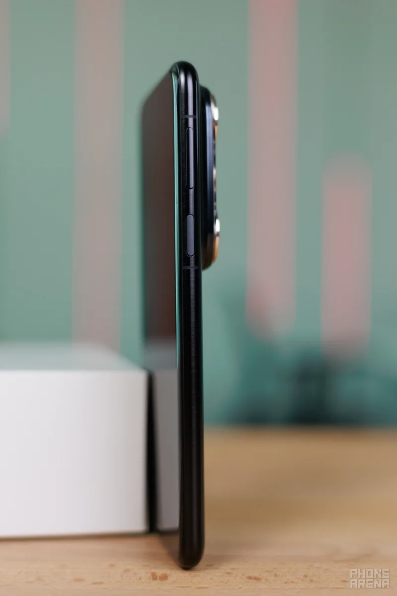 Кстати, толщина телефона заявлена как 8,3 мм, но если учесть выступ камеры, то она составит около 14–15 мм. Выступы камеры тоже огромные (и золотистые в нашем цветовом варианте), и выглядят они довольно необычно.