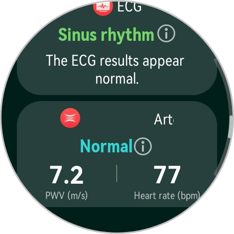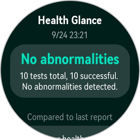 В часах используется новый датчик «три в одном», который сочетает в себе функции ЭКГ, ФПГ (фотоплетизмографии) и датчика давления для оценки некоторых ключевых показателей здоровья, таких как вариабельность сердечного ритма, уровень насыщения крови кислородом, температура кожи, уровень стресса, ЭКГ и жёсткость артерий. В конце часы также предлагают вам несколько раз кашлянуть, чтобы оценить состояние дыхательной системы.