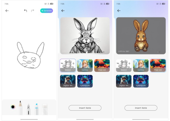 Функции искусственного интеллекта в infinix включают в себя перевод в реальном времени, помощь в работе с документами и написании текстов, преобразование эскизов в изображения в заметках, создание обоев, редактирование изображений (расширение, удаление объектов) и многое другое.