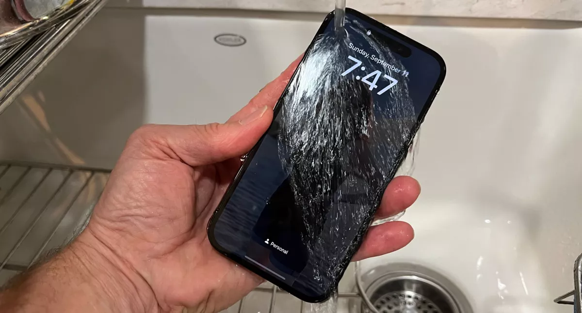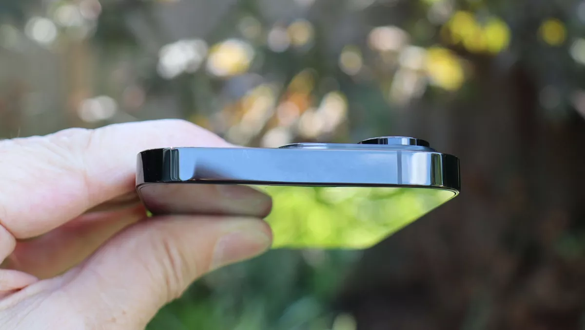 Сзади iPhone 14 Pro — почти копия iPhone 13 Pro. Оба имеют рамку из нержавеющей стали, заднюю панель из матового стекла и великолепный экран, который защищен Ceramic Shield от Apple — прозрачным материалом, содержащим керамические кристаллы для дополнительной защиты экрана. Смартфон по-прежнему устойчив к воздействию воды и пыли.
