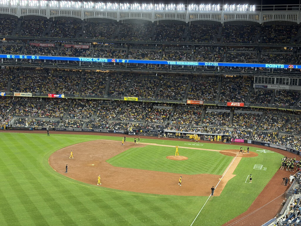 Другая новая функция камеры iPhone 17 — это Dual Capture, которая позволяет записывать видео с передней и задней камер одновременно — от 0,5x до 10x цифрового зума — и получать один файл. Это не совсем новая идея, но Apple встраивает эту функцию прямо в приложение «Камера». Было очень весело использовать ее на бейсбольном матче — Savannah Bananas на Yankee Stadium, если вам интересно — но я также вижу, что эта функция будет хитом на концертах, когда вы подпеваете песне («Born to Run», кто-нибудь?). И она, скорее всего, понравится семьям, особенно с маленькими детьми.