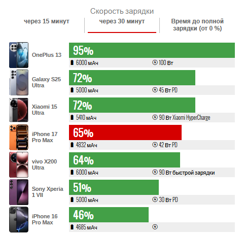 С учётом всех показателей время активного использования iPhone 17 Pro Max составляет 17 часов 58 минут. Как тебе такое, Pixel?