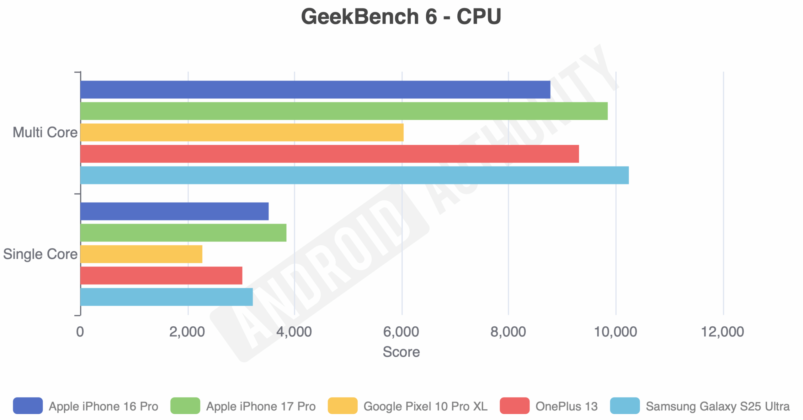 На мой взгляд, здесь нет ничего захватывающего или хотя бы интересного. iPhone 17 Pro демонстрирует впечатляющие результаты, к которым мы привыкли в хорошо оптимизированных флагманах Apple. Возможно, он не так сильно выделяется на фоне остальных, как раньше, но он точно не отстаёт. Нам придётся подождать и посмотреть, как он проявит себя в сравнении с грядущими флагманами на базе Snapdragon 8 Elite Gen 5, но пока я доволен тем, что предлагает Apple.