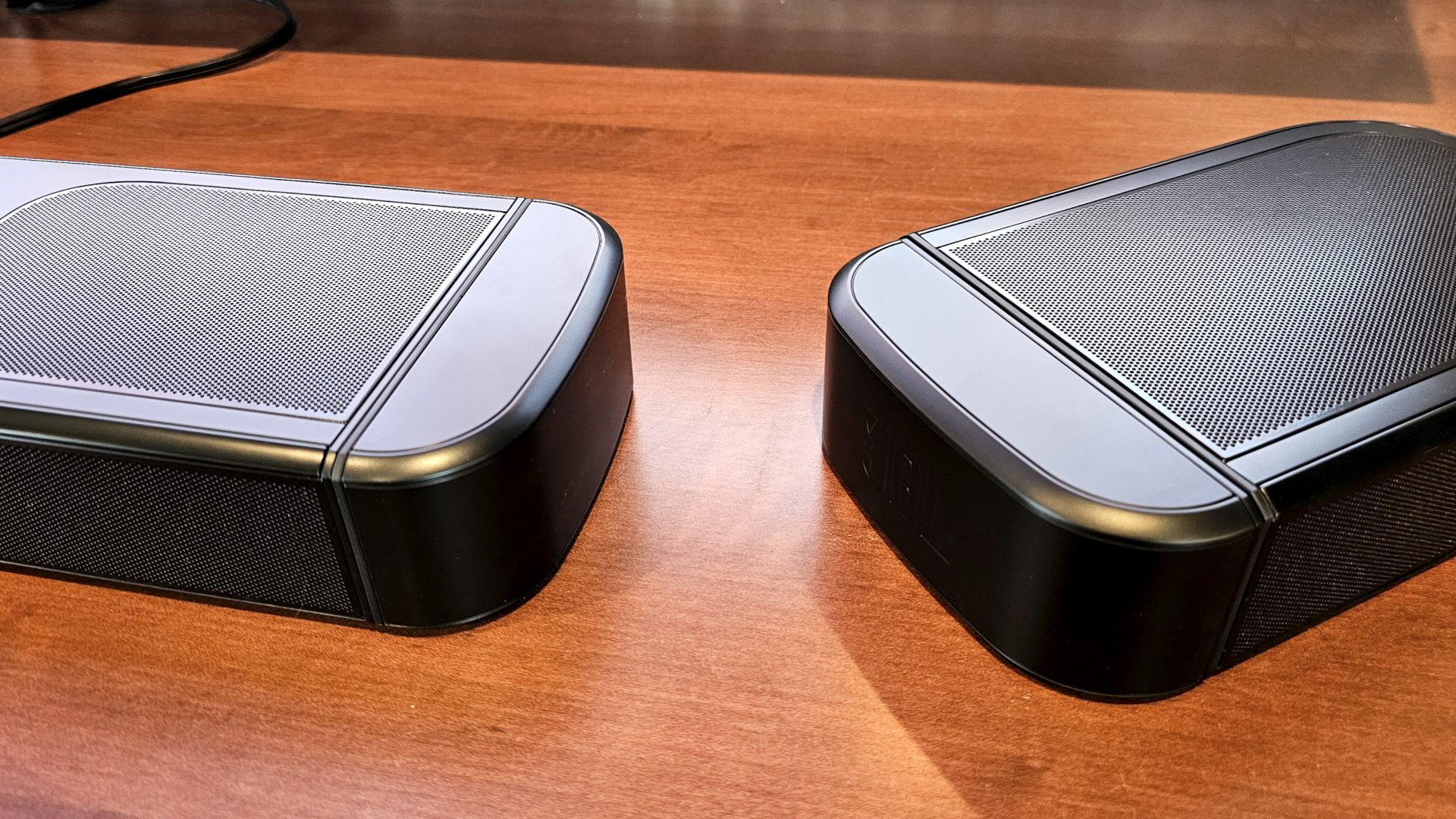 Съемные тыловые колонки также были изменены. И здесь JBL заменила твитеры на полнодиапазонные овальные динамики. Теперь тыловые колонки можно использовать в другой комнате для удаленного прослушивания телевизора или как альтернативу основной панели и сабвуферу в ночном режиме.