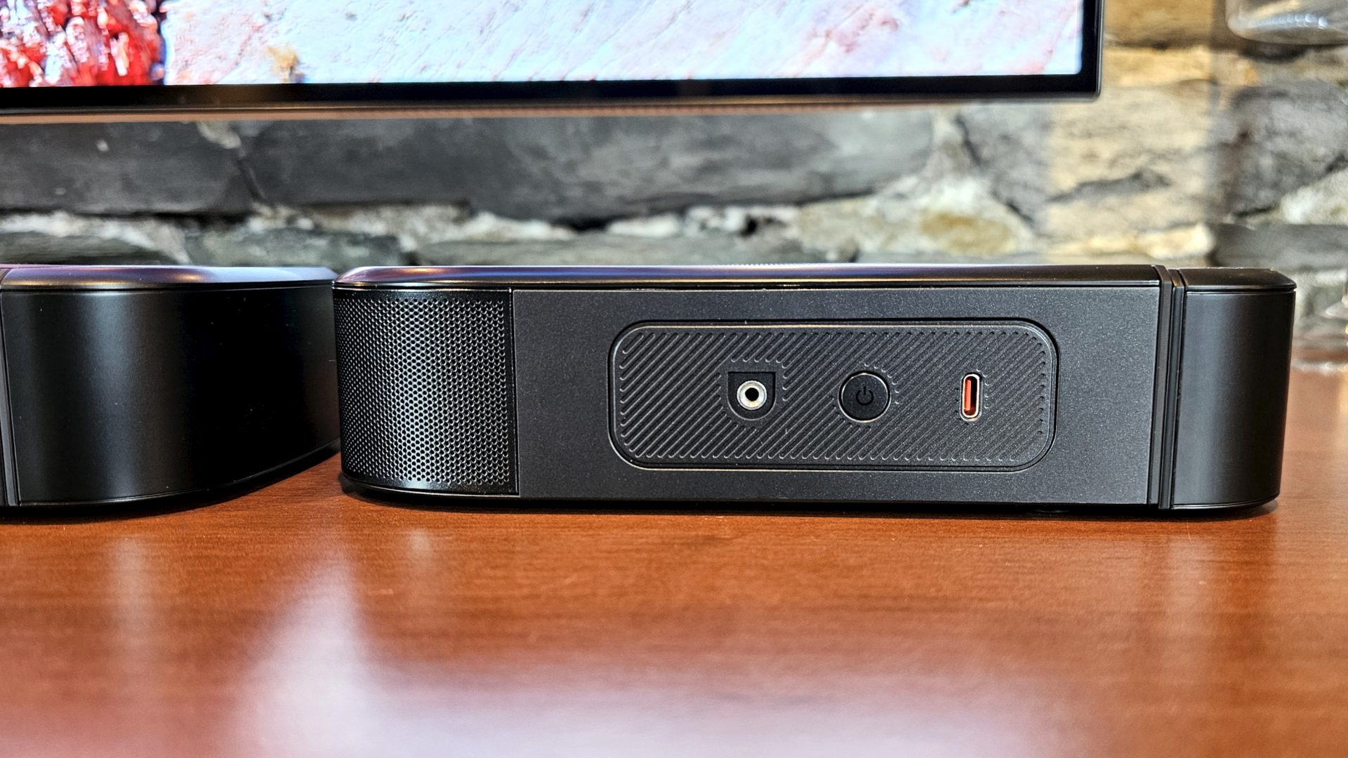 Верхние элементы управления саундбара крайне просты: громкость и выбор входа. Если вы используете колонку исключительно для ТВ-аудио, этого достаточно. Если же вы используете ее для музыки, это может показаться ограничивающим, особенно из-за отсутствия отключения звука, воспроизведения/паузы и пропуска треков.
