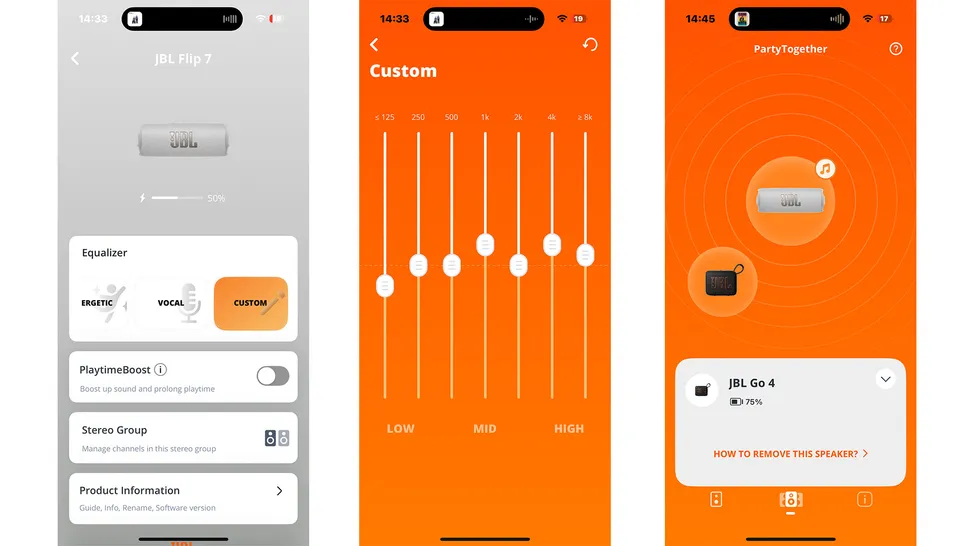 Во время наших тестов мы использовали Go 4 в сочетании с парой Flip 7, но при желании вы можете подключить практически любое количество современных колонок JBL в режиме вечеринки или соединить пару Flip 7 в стереорежиме, назначив левый и правый каналы через приложение. Однако стоит отметить, что вы не можете подключить более старые модели, такие как Flip 6, к нескольким новым колонкам JBL с помощью Auracast, что немного огорчает владельцев Flip.