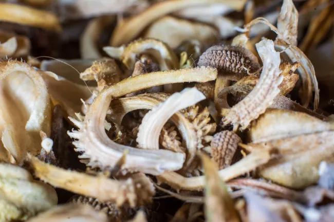 Следующая подборка примеров изображений была сделана с помощью моего объектива Leitz 50 мм с фиксированным фокусным расстоянием (адаптированного для байонета Nikon F) и самой длинной удлинительной трубки Kenko 36 мм. Объектами съёмки стали различные очень маленькие предметы и их ещё более мелкие части, в том числе семена, собранные в моём саду, модель гоночного автомобиля в масштабе 1/32nd, фарфоровая статуэтка, голова традиционной рождественской игрушки «Щелкунчик» и пара игрушечных солдатиков. Все объекты были освещены парой светодиодных фотоламп.