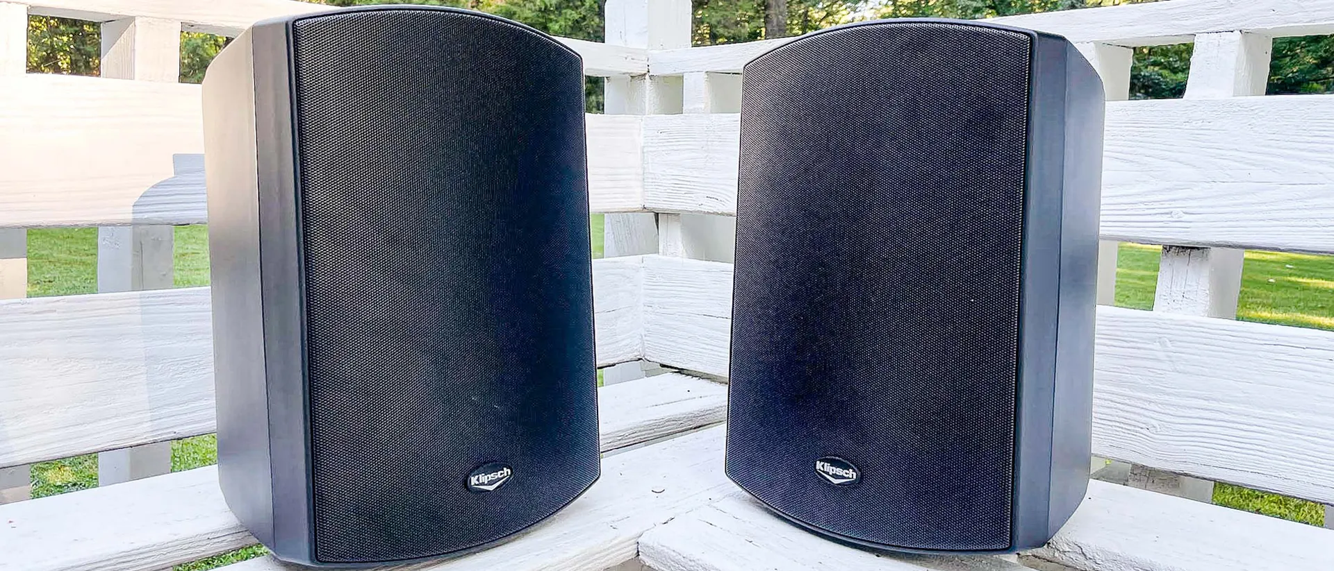 Klipsch AW‑650 — крупные проводные уличные колонки, которые заполнит ваш двор насыщенным, детализированным звуком с мощным басом.