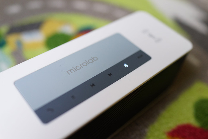 Кстати, нас несколько удивило, что все органы управления, за исключением кнопки включения, здесь сенсорные. При воспроизведении музыки по Bluetooth можно непосредственно с колонки управлять медиаплеером на смартфоне или на другом подключенном устройстве. Удобно и то, что часть кнопок имеет подсветку. По чувствительности сенсоров вопрос у нас не возникло.