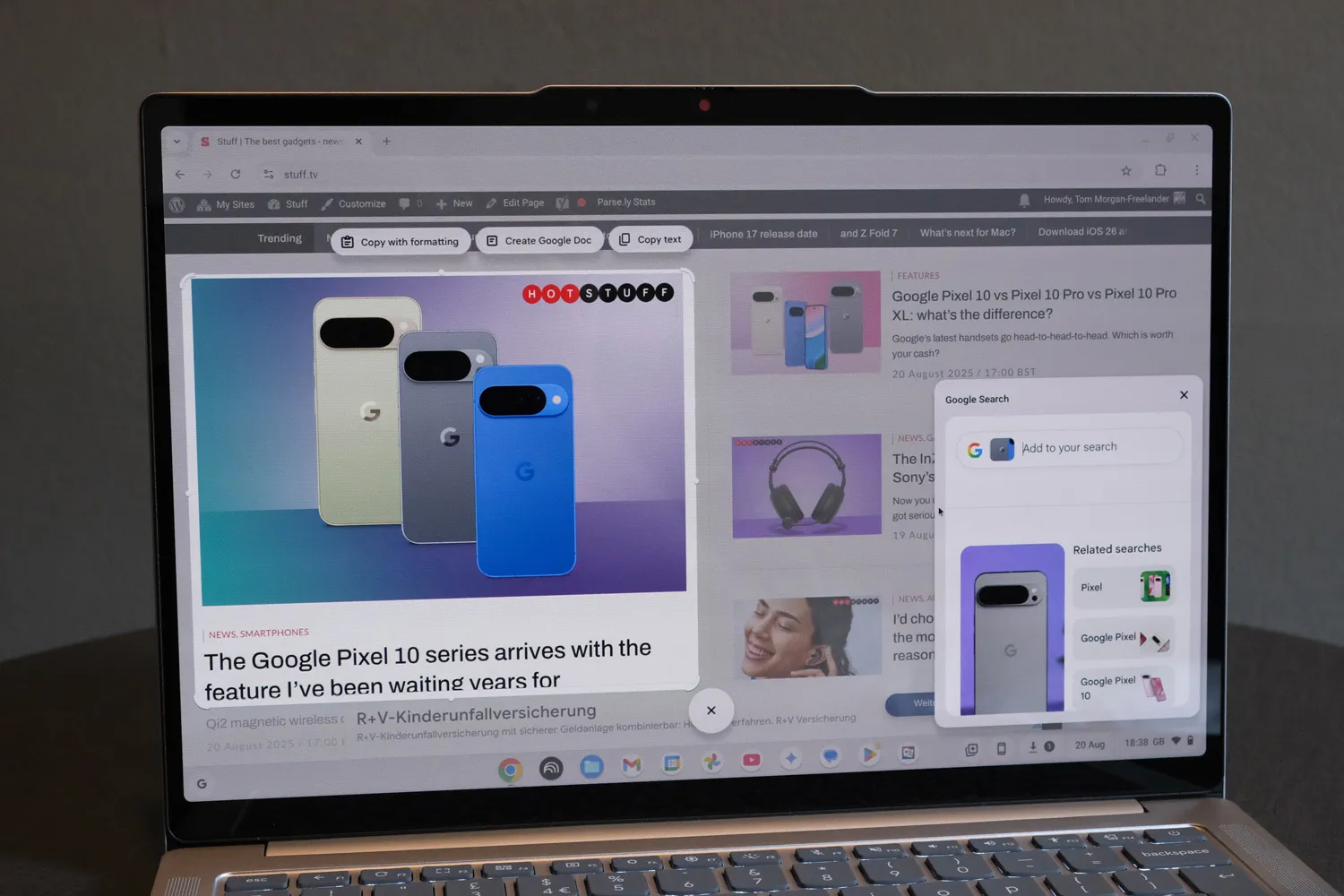 Функция Smart Grouping в настоящее время доступна только на Chromebook Plus 14. Она позволяет размещать связанные приложения и окна на новом виртуальном рабочем столе, чтобы сократить количество переключений между вкладками с помощью Alt+Tab. Эта функция действительно упрощает работу с минимальными усилиями. Я также нашёл полезной функцию Select to Search with Lens — аналог функции Circle to Search на вашем телефоне, которая открывает окно в углу экрана с соответствующей информацией о выделенном фрагменте.