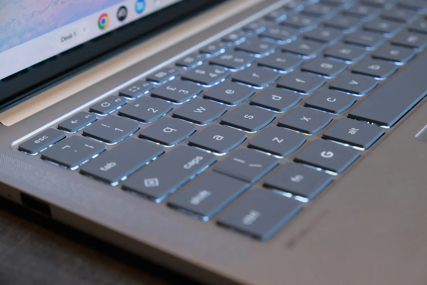 Клавиатура Lenovo Chromebook Plus 14 в форме щита может быть фирменным знаком Lenovo, но раскладка стандартная для Chromebook. Это означает, что клавиша G от Google расположена между функциональными клавишами и клавишей Alt, а клавиша Insert имеет приоритет над клавишей Caps Lock (хотя при удержании клавиши Fn заглавные буквы всё равно будут переключаться, ЕСЛИ ВЫ ДЕЙСТВИТЕЛЬНО ХОТИТЕ).
