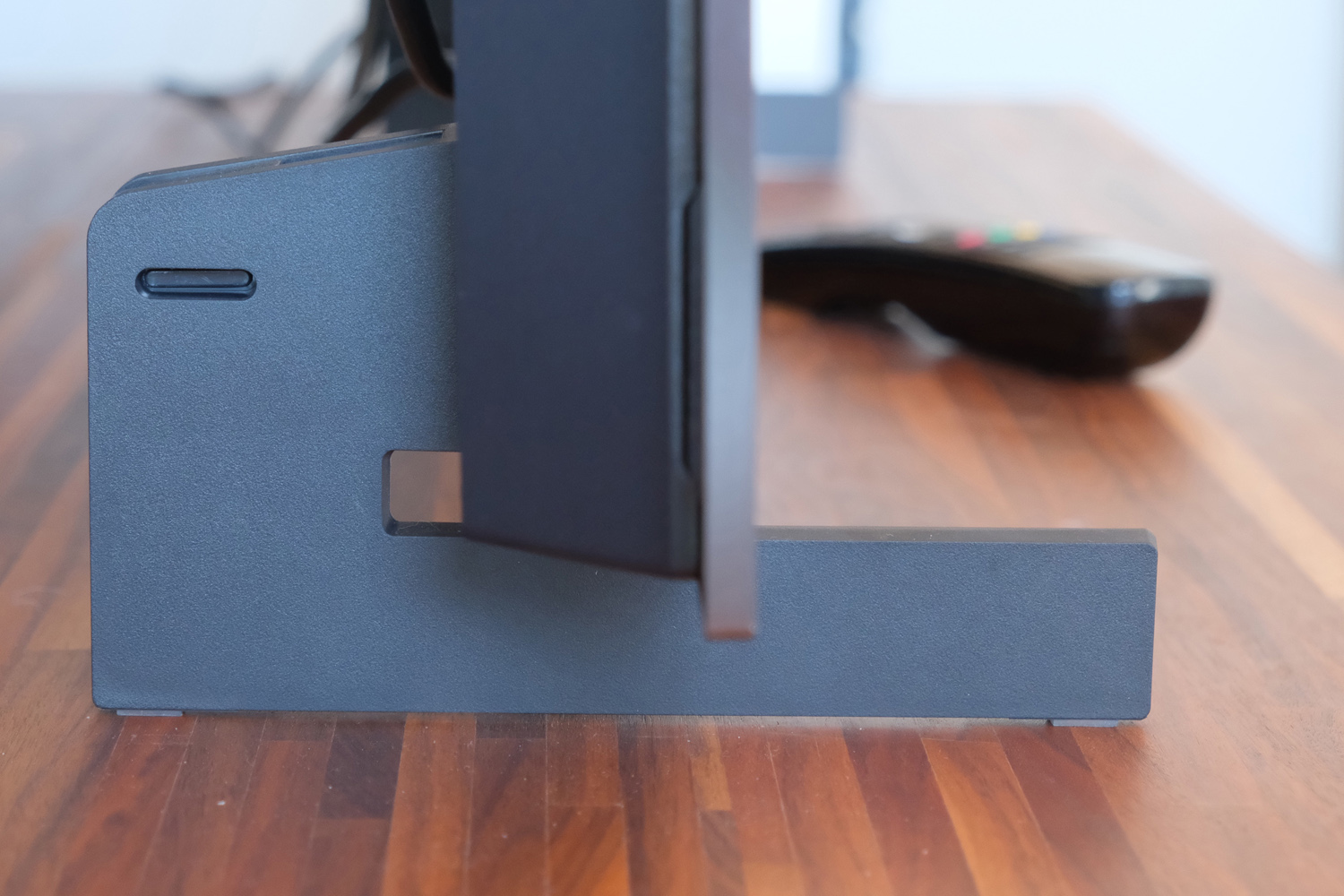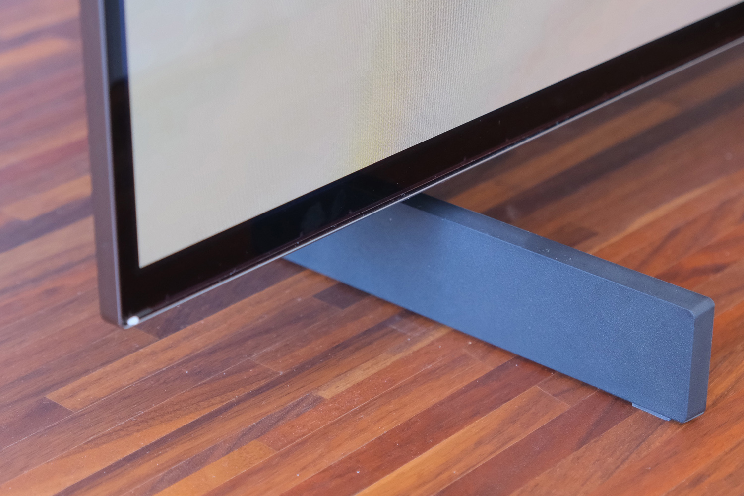 Только внешние края задней панели имеют пятнистую отделку, а большая рамка выполнена из простого чёрного пластика. Но это не тот телевизор, который требует, чтобы обе стороны были на виду, так что я не думаю, что это серьёзная проблема.