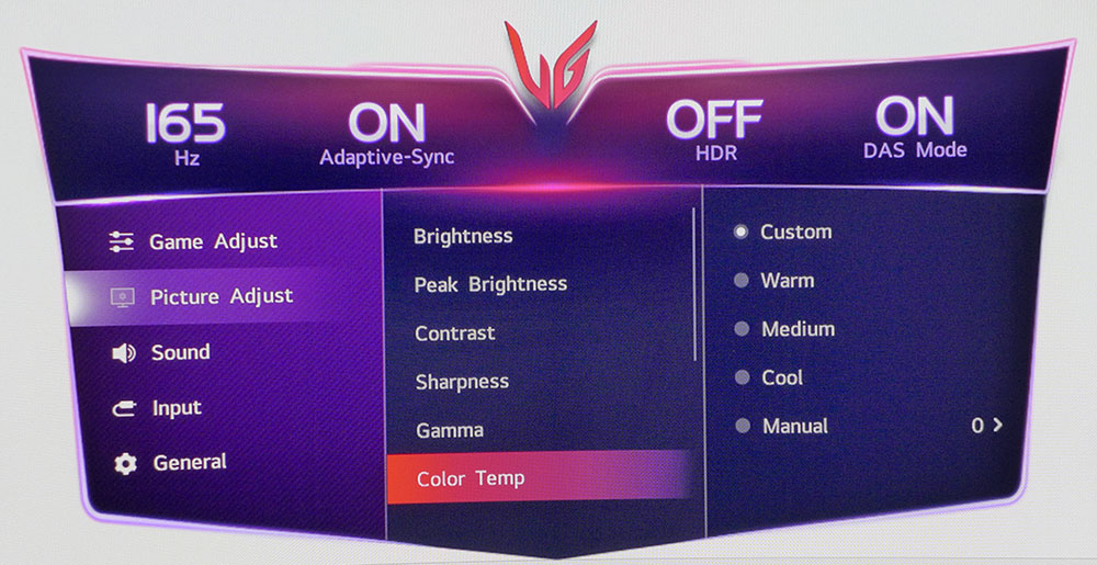 Монитор 45GX950A поставляется с предустановленным режимом изображения Gamer 1, который откалиброван на заводе с использованием точки белого 6500 К, гаммы BT.1886 и цветового пространства DCI-P3. Я заметил, что настройка привела к некоторым эффектам, которые не улучшили качество изображения.