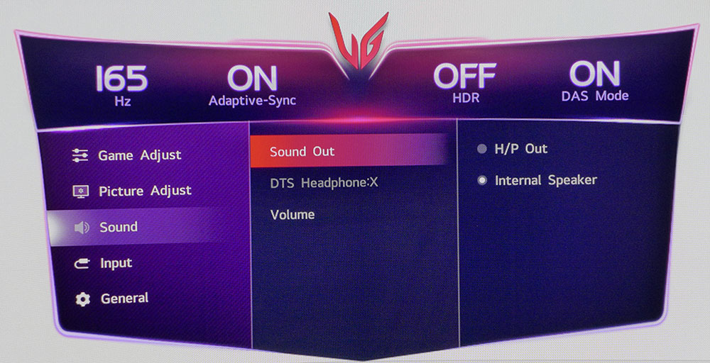 Экранное меню LG Ultra Gear 45GX950A появляется при нажатии на джойстик. Оно ориентировано на игровой процесс и имеет привлекательный внешний вид с цветовыми эффектами и эффектами затухания, а важная информация всегда отображается в верхней части.