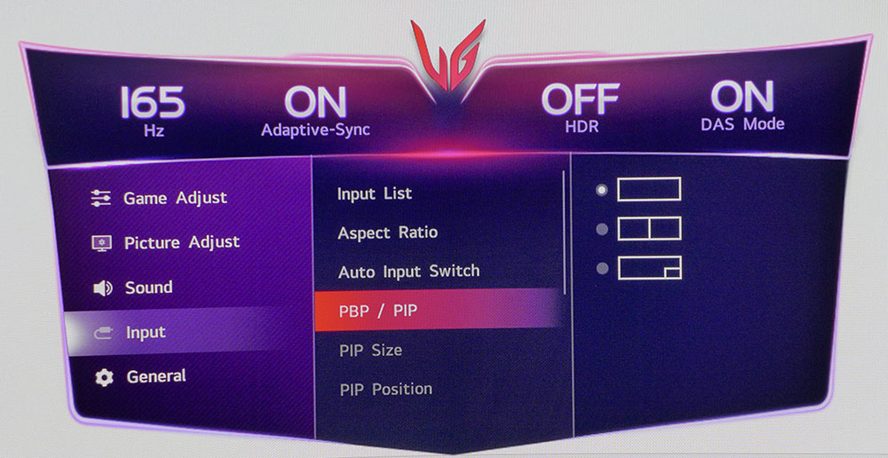 Модель 45GX950A поддерживает режимы PIP и PBP, поэтому вы можете просматривать два видеосигнала одновременно. Параллельное отображение особенно удобно, если у вас подключены ПК и консоль. В общем меню доступны функции ухода за OLED-дисплеем, в том числе орбитальное движение пикселей, экранная заставка и автоматическая очистка изображения через определённые промежутки времени. Два направления джойстика можно запрограммировать для быстрого доступа к различным функциям.