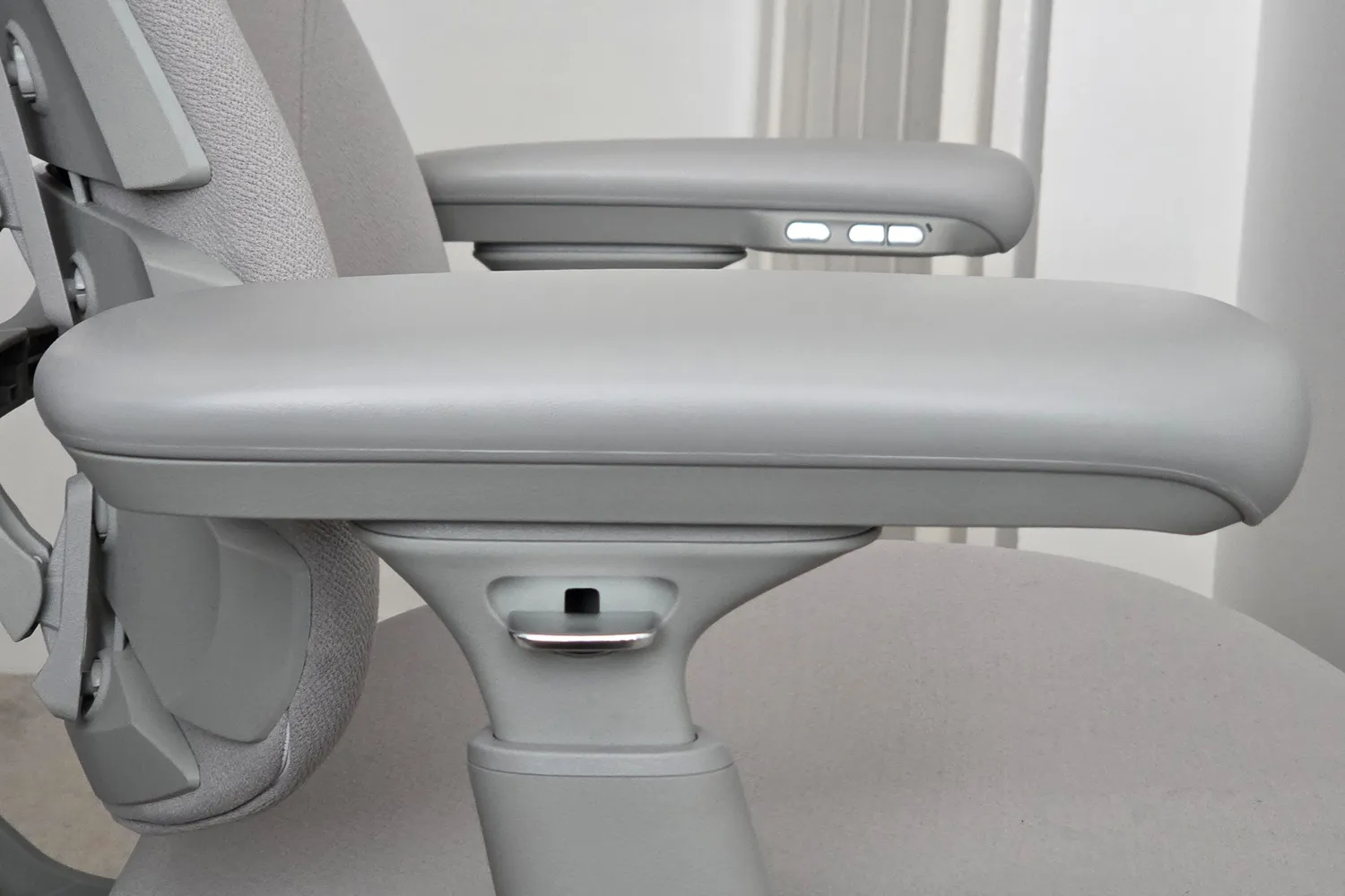 Спинка имеет 16 точек изгиба, которые адаптируются к контурам вашего тела, поэтому, кроме поясничной поддержки, здесь почти нечего настраивать. Того же нельзя сказать о 4D-подлокотниках, которые движутся во всех направлениях, и о подголовнике, который можно сдвигать и поворачивать. Поиск идеального положения занял некоторое время, но это разовая настройка, так как подголовник и подлокотники движутся синхронно, когда вы откидываетесь назад.