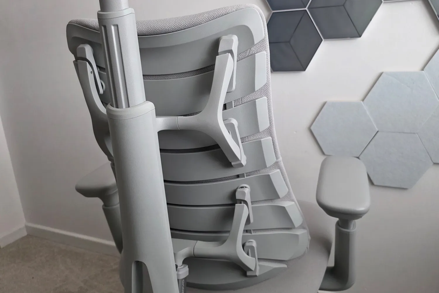 Сегментированная спинка LiberNovo Omni придает ему футуристический вид, особенно в версии Space Gray, которую мне прислали на тест. Также есть полностью черная модель, если она лучше вписывается в ваш интерьер или вы не доверяете материалам, на которых легко остаются пятна.